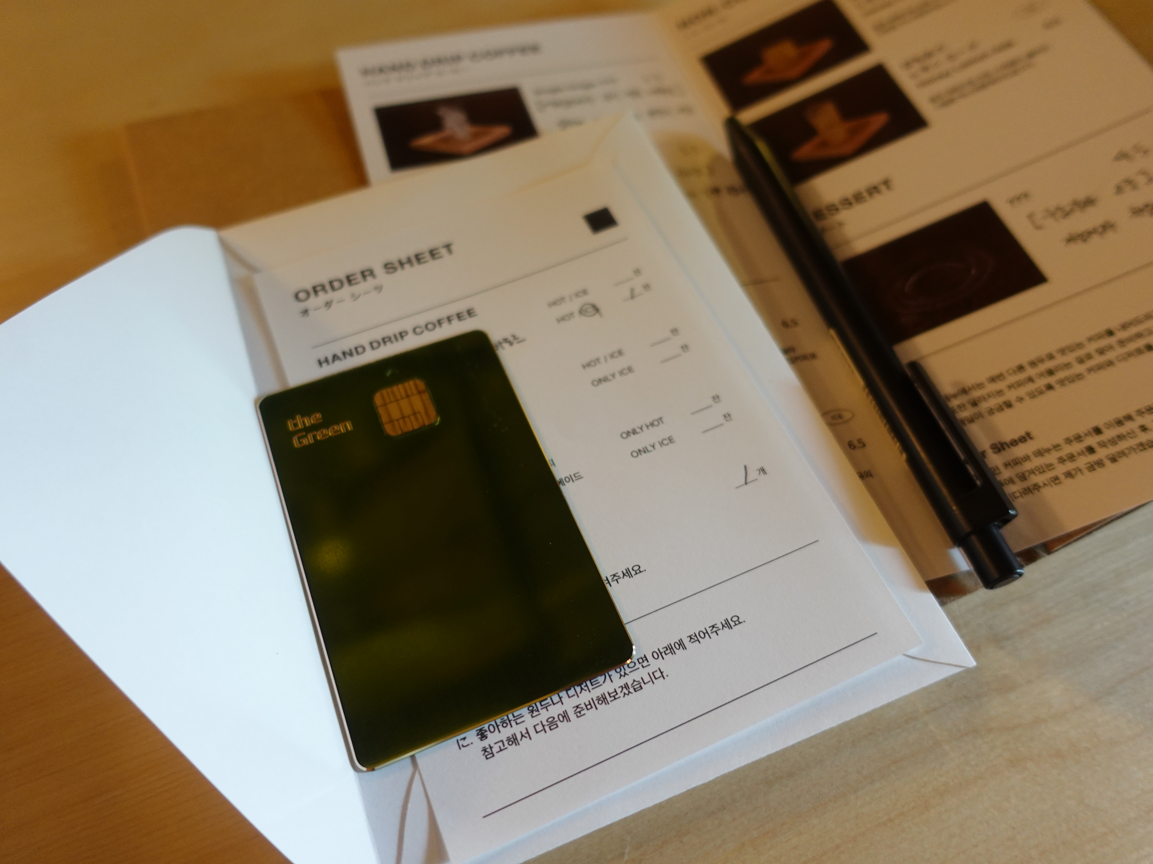메뉴판에 꽂혀져있는 주문서에 주문을 작성하고, 결제할카드를 넣어 전달주시면 됩니다.