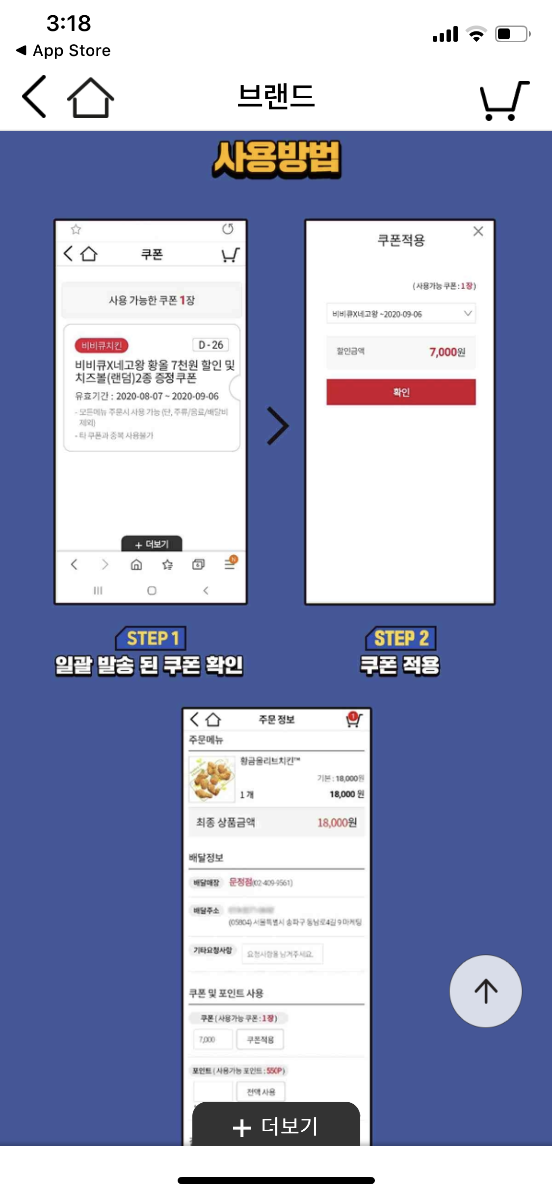 - 주문 후 쿠폰 적용을 하여 7천원 할인을 받으시면 됩니다.