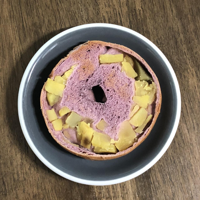 포비 베이글의 고구마 베이글입니다!! 처음 먹는데 다른 베이글보다 베이글 안에 고구마가 있어