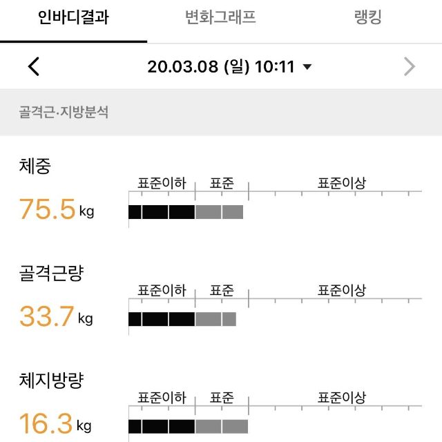 드디어 체지방량이 표준범위에 들어왔습니다! 하하하하하 :)