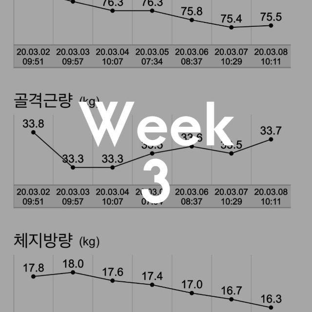 그리고 3주차 누계로 말씀드리면 제가 다이어트 초기에 말씀드렸던