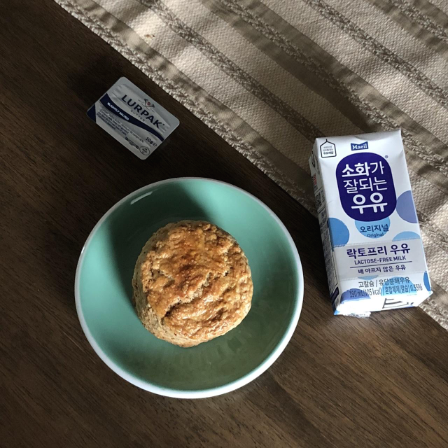아침에는 선물로 받은 스콘을 먹었습니다.