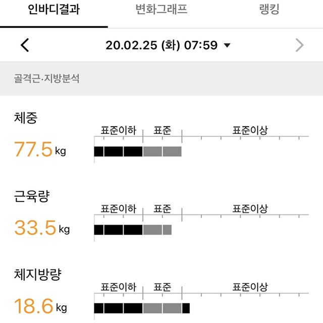 체지방량만 얼렁 표준으로 들어가고 싶네요 ㅎㅎ