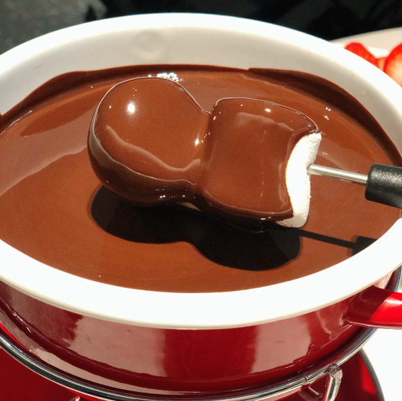 딸기와 마시멜로우를 꼬치에 끼워 초코에 무자비하게 담가 먹으면 된다