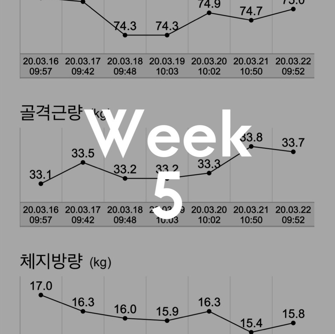 아쉽게 마지막 기록날 수치가 올라서 5주차에 체중 5kg 감량에는 미치지 못했습니다.